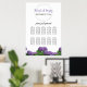 This elegant floral design features purple hydrangeas. The beautiful purple hydrangeas are complimented with their greenery. The bride's and groom's names are colour matched to the purple of the hydrangea flower and are encircled with three geometric rings. This is the perfect elegant floral wedding design ideal for any wedding theme. Elegant hydrangea flower wedding seating chart design with modern elements. Matching wedding invitations and other stationery items are also available.
