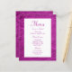 Add some fun to your tables with this floral navy blue and peach peony flower wedding menu card.
