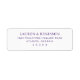 These return address labels feature a clean, minimalist design with a simple centered layout that emphasizes readability and elegance. The deep purple color palette adds a touch of sophistication against the plain white background, while the serif font enhances the formal and polished tone. Perfect for personalizing envelopes or invitations, these labels offer customizable text fields for names and addresses, ensuring clarity and functionality in any official communication. Their straightforward aesthetic makes them ideal for weddings, formal events, or professional correspondence.