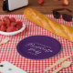 This elegant royal purple bachelorette party paper plate features customized white typography for a bride who is going to have an evening event with her bridesmaids. A chic, minimalist bachelorette party decor.