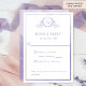 Elegant purple RSVP card with a beautiful lavender purple monogram, card with the ability to add meal choices, or, if you rather have RSVP without meal options, simply erase meal instructions and choices from text boxes to delete or add in its place a personal message to your guests (i.e. "hope you can make it, can't wait to see you there!"). A fine purple watercolor frame on the front, while back with a delicate watercolor wash in purple hues. Clean, minimal, and elegant style with monogram's initials in calligraphy. Part of our "Lavender Watercolor Botanical Monogram" Collection with a variety of coordinating products available. Visit the entire collection with this link: https://www.zazzle.com/collections/lavender_watercolor_botanical_monogram_wedding-119337531503251435