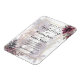 A stunning array of flowers in shades of purple, pink, and maroon. The intricate details of the petals and centres create a sense of elegance and beauty. The flowers are complemented by delicate leaves and stems in muted tones, adding a touch of natural grace to the design.