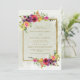 Elegant Purple Red Floral Green Leaves Gold Invitation