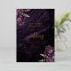 This elegant wedding invitation features purple floral bouquets set off with rose gold faux foil greenery in two corners, on a background image of purple watercolor agate. The customisable text combines real rose gold foil serif, italic and handwriting fonts. The reverse side features a matching purple and rose gold floral and agate design.