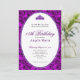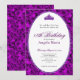 This elegant purple floral 18th birthday debut invitation has purple roses, a tiara crown, and a purple glitter oval with a personalizable template to create your own message. The invitation template is customizable in the listing editor and is also available as a digital download that's printable after you personalize it. The back has purple roses covering the entire surface to create and classic and classy mood for your event.