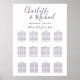 Purple elegant signature wedding seating chart featuring signature style names, this chic, stylish seating chart can be personalised with your information in modern lettering. Designed by Thisisnotme©
