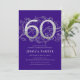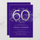 Elegant purple silver 60th birthday party invitation. Customisable modern feminine design featuring roses botanical accents and faux glitter silver. Simple floral invite card perfect for a stylish female bday celebration. Personalise with your own details. Printed Zazzle invitations or instant download digital printable template.
