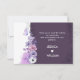 An elegant purple floral wedding thank you card featuring soft watercolor flowers in lavender, blush, and white, accented with delicate botanical line art and a graceful butterfly. The split layout with a deep plum panel and soft floral border creates a romantic and sophisticated look, perfect for sending heartfelt thanks after your wedding celebration. A beautiful choice for couples creating a coordinated floral wedding stationery suite with a feminine purple palette.