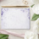 Beautiful and elegant purple tint wedding envelope design featuring vines and roses around the border and a fade of a heart in the centre. The design has a printed faux texture for an old paper look. This same design comes in green, red, pink, purple, blue, antique gold and bright gold. This design also comes on many other paper products and also postage to suit all your wedding set needs.