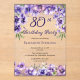 Elegant purple violets floral design "80th Birthday Party" design featuring a floral top and bottom swag of violets with white stardust accents.