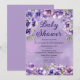 The background blends distressed violet tones with soft white stardust accents, creating a subtle sparkle and dreamy texture that feels refined yet welcoming. Perfect for a girl baby shower, this floral theme is ideal for invitations, decorations, favors, and keepsake items, offering a sophisticated look that works beautifully for both traditional and modern celebrations.