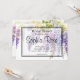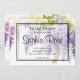 This Elegant purple wisteria floral bridal shower invitation watercolor painting captures the delicate beauty of purple wisteria in full bloom. The petals, rendered in varying shades of soft purple and pink, unfurl gracefully, showcasing the flower's intricate layers and natural elegance. The translucent quality of the watercolor medium enhances the wisterias ethereal charm, with subtle washes and gradients giving depth and dimension to each petal. Hints of green in the background suggest a lush garden setting, while the interplay of light and shadow adds a sense of realism and tranquillity. This piece evokes a sense of serenity and the timeless allure of nature's most romantic blooms.