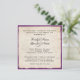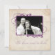 Invitation features parchment paper texture with frilly Purple lines bordering a frame around your engagement photograph with text that says "to have and to hold" on one side with your wedding details on the other with an orange border around the edges of the invitation.
