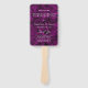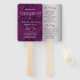 Simple, elegant, calligraphy grey and purple wedding program hand fans with modern script.