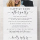 Elegant elopement or private wedding announcement with a wedding reception invitation that features your photo and "Happily Ever After Party" in a mix of simple typography and a stylish script with swashes. Input your wedding website URL address to create a QR code for your guests to RSVP online and obtain information on accommodations, directions, any night before parties and other details. A tear away RSVP postcard provides a convenient and eco-friendly and envelope-free response from your guests.