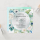 Elegant quinceañera invitation with gorgeous blue watercolor floral design in a variety of aqua, turquoise, teal, green mint, lime green and white tones over crisp white background. Circular section with your quinceañera details with round border in turquoise and delicate soft watercolor stains in aqua and turquoise hues. Modern handwritten calligraphy details. Back with watercolor texture in aqua, turquoise, teal, and green mint hues. Ability to make text size, colour, style and position by selecting customise further. Invitation with area for your Mass ceremony and reception details, which if you like, can be changed to reception/dinner and dance. This same invitation is also available in Spanish.
