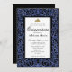This elegant quinceanera invitation has blue glitter scrollwork, a gold tiara crown, and a black background with a personalizable template to create your own message. The invitation template is customizable in the listing editor and is also available as a digital download that's printable after you personalize it.