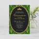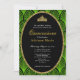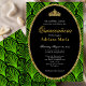 This elegant green and black art deco quinceanera invitation has green arches, a gold tiara crown, and a gold glitter oval with a personalizable template to create your own message. The invitation template is customizable in the listing editor and is also available as a digital download that's printable after you personalize it.