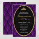 This elegant purple and black art deco quinceanera invitation has purple arches, a gold tiara crown, and a gold glitter oval with a personalizable template to create your own message. The invitation template is customizable in the listing editor and is also available as a digital download that's printable after you personalize it.