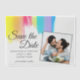 Beautiful watercolor rainbow wedding photo Save the Date with pretty, artistic paint strokes full of bright colour. These colourful invitation is perfect for an artistic couple or a gay and lesbian wedding. Customise with your own photograph for a nice, personal touch.