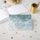 Elegant In Loving Memory, Funeral / Celebration of Life guestbook, with real foil text details in front and spine, hardcover with a beautiful tranquil water beach image in velvety texture in blue, aqua, and white tones, and exquisite modern calligraphy details. Choose from three size options and three foil colours: gold, silver, or rose gold.