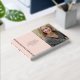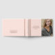 In Loving Memory, Funeral / Celebration of Life photo guestbook, with a simple, minimal, and elegant design with a soft velvety hardcover in an attractive blush pink tone, and real foil stripes, and text details. Choose from three size options and three foil colours: gold, silver, or rose gold. Personalise it with your loved one information on the front and spine and add on the back any message you like.