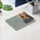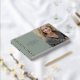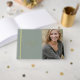 In Loving Memory, Funeral / Celebration of Life photo guestbook, with a simple, minimal, and elegant design with a soft velvety hardcover in an attractive sage tone, and real foil stripes, and text details. Choose from three size options and three foil colours: gold, silver, or rose gold. Personalise it with your loved one information on the front and spine and add on the back any message you like.