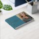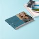 In Loving Memory, Funeral / Celebration of Life photo guestbook, with a simple, minimal, and elegant design with a soft velvety hardcover in an attractive teal hue, and real foil stripes, and text details. Choose from three size options and three foil colours: gold, silver, or rose gold. Personalise it with your loved one information on the front and spine and add on the back any message you like.