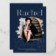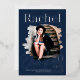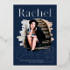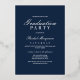 This elegant and modern graduation invitation is perfect for your special day. It features real silver foil typography including the graduate's name, graduation year, and "Class of," on top of a simple navy blue background and a brushstroke cut-out halo photo of the guest of honour. It's minimal, chic, unique, and stylish; the perfect design to impress your guests.