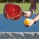 Elegant Red and Black Agate Monogrammed Pickleball Paddle