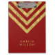 Elegant clipboard featuring faux gold chevron pattern that you can personalise with your name against a red background. Great for office or school.