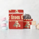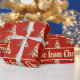 Elegant Red and Faux Gold Foil Christmas Tree Pattern with custom text Merry Christmas Elizabeth With Love from Christopher, you can change or delete all text, Christmas Gift Wrapping Paper, choose matte or glossy