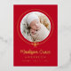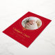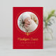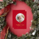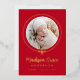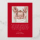 Introducing our Elegant Red and Gold Foil Bow Photo Birth Announcement, a stunning way to celebrate your little one’s arrival. The baby’s photo is beautifully encircled by a gold foil ribbon tied in a bow on a red background. Your baby's first and middle name appear in elegant calligraphy, with the last name and birth stats below. The back of the announcement offers space for an extra photo and a personal message. This luxurious, customisable keepsake is perfect for sharing your joy with family and friends!