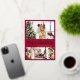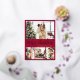 Elegant Calligraphy Minimalist Red and Gold Foil Script 4 Photo Collage Merry Christmas Holiday Postcard. This festive, mimimalist, whimsical four (4) photo holiday card template features a pretty photo collage. The „Merry Christmas” greeting text is written in a beautiful hand lettering brush script font type in gold on burgundy red colour background. On the reverse side with greeting text template with a little heart doodle on white and one photo template. Pretty greeting card for your family and friends in Christmas Holiday season.