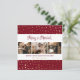 Custom red and gold photo Merry and Married Christmas cards featuring a star pattern on a red background with 3 photos in the middle and a beautiful hand-lettered script title above. Easily personalise this elegant Christmas card with your images, text, and your family name.