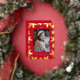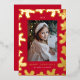 Elegant Red and Gold Pine Frame Photo Foil Holiday Card