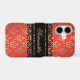 Easily add your own name to this elegant red and gold faux shimmer damask case.