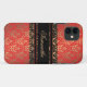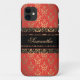 Easily add your own name to this elegant red and gold faux shimmer damask case.
