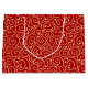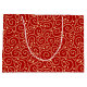 An elegant red and gold swirls and dots pattern on a gift bag, perfect for your Holiday gift giving needs.