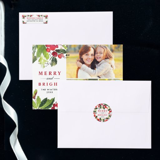 Red Watercolor Greenery Holiday CardsDesigned by Kat Fusinski