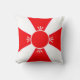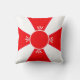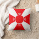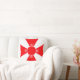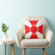 Elegant red and white Pillow. A red cross is formed by four triangles and a circle decorated with three-leaf feathers.