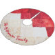 A Personalised Patchwork quilted pattern Tree skirt in christmas colours of white and red.