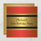 Elegant Red Black & Gold Metal 21st Birthday Invitation
