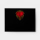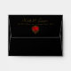 Red black and gold wedding RSVP envelopes with beautiful red and gold heart and red black and gold damask interior. These elegant red black and gold RSVP envelopes are easily customised with your details. Simply use a pen with white or gold ink to fill out your guests names and addresses. The heart is centred on the front since the return address is on the back flap.