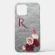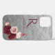 Elegant Red Blush Roses with Monogram on Grey Case-Mate iPhone Case