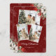 Elegant red photo Christmas card featuring snowflakes and watercolor painting of poinsettia, holly and red berries. Easily personalize this modern holiday card with your photos and text.