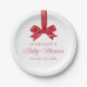 Elegant Red Bow Christmas Baby Shower Paper Plate