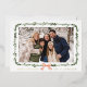 Elegant Red Bow Greenery Garland Photo Foil Holiday Card