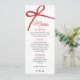 This elegant wedding menu features a minimal red bow illustration at the top, paired with modern typography on a clean white background. Perfect for romantic dinners, weddings, bridal showers, or holiday celebrations. Customize the text to match your event details and colors for a timeless and stylish table setting.