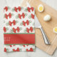 Elegant Red Bow with greenery Monogram Name Kitchen Towel. Click the edit button to customize this design.